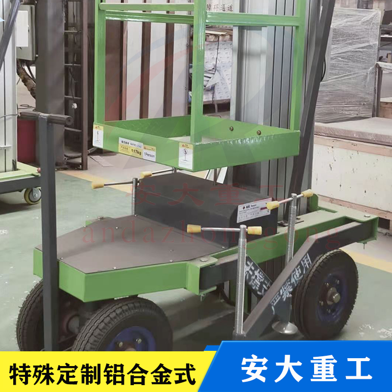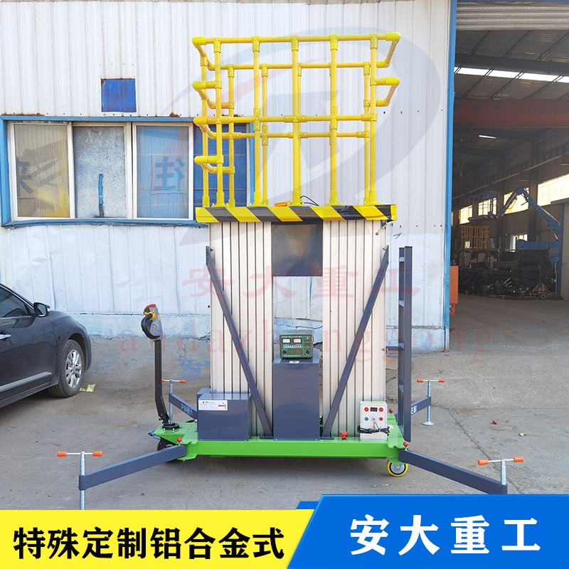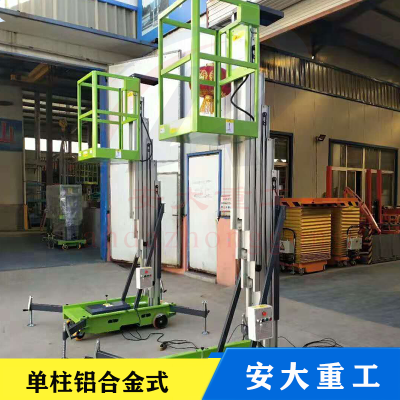 鋁合金式升降平臺采用高強度優質鋁合金材料,具有造型美觀、體積小、重量輕、升降平穩、安全可靠等優點,平臺自身佩戴保險鋼繩和安全保護裝置,并能夠上下操作,廣泛用于工廠、賓館。